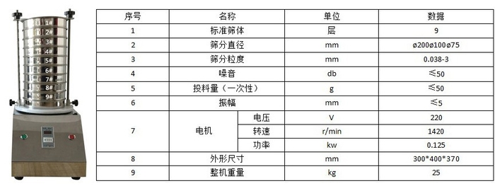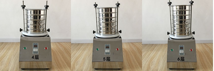 二、把标准筛具按孔径从大到小,从下到上依次叠放到托盘座上,由凹槽或定位螺丝对标准筛具进行定位。